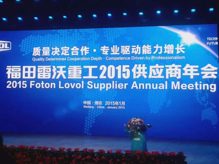 2015年1月17日,我公司应邀参加了福田雷沃重工2015供应商年会。 我公司将坚决积极履行质量义务,严格质量标准,为双方进一步扩大合作打下良好的基础。